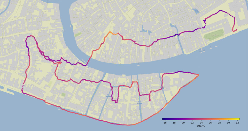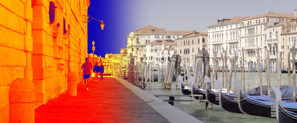 Inspired by this crucial question, we contribute to the Italian Pavilion “Resilient Communities” with a documentary, a data-driven investigation to focus on the significance of the environmental quality of public space, interpreted as the fundamental physical domain for living together. In the context of a severe unprecedented climate crisis with far-reaching effects on millions of people around the world, we use the threshold defined by the Paris Agreement of keeping a global temperature rise of this century well below 2° C above pre-industrial levels, using the 2 meters’ measure to raise awareness on the influence of design and materiality on environmental conditions in urban space. In particular, Venice, as a role model for the resilience of public space, underlines the relevance of the daily dose of 2° C temperature increase between 2 m layer of air, as an exposure index in everyday urbanism.